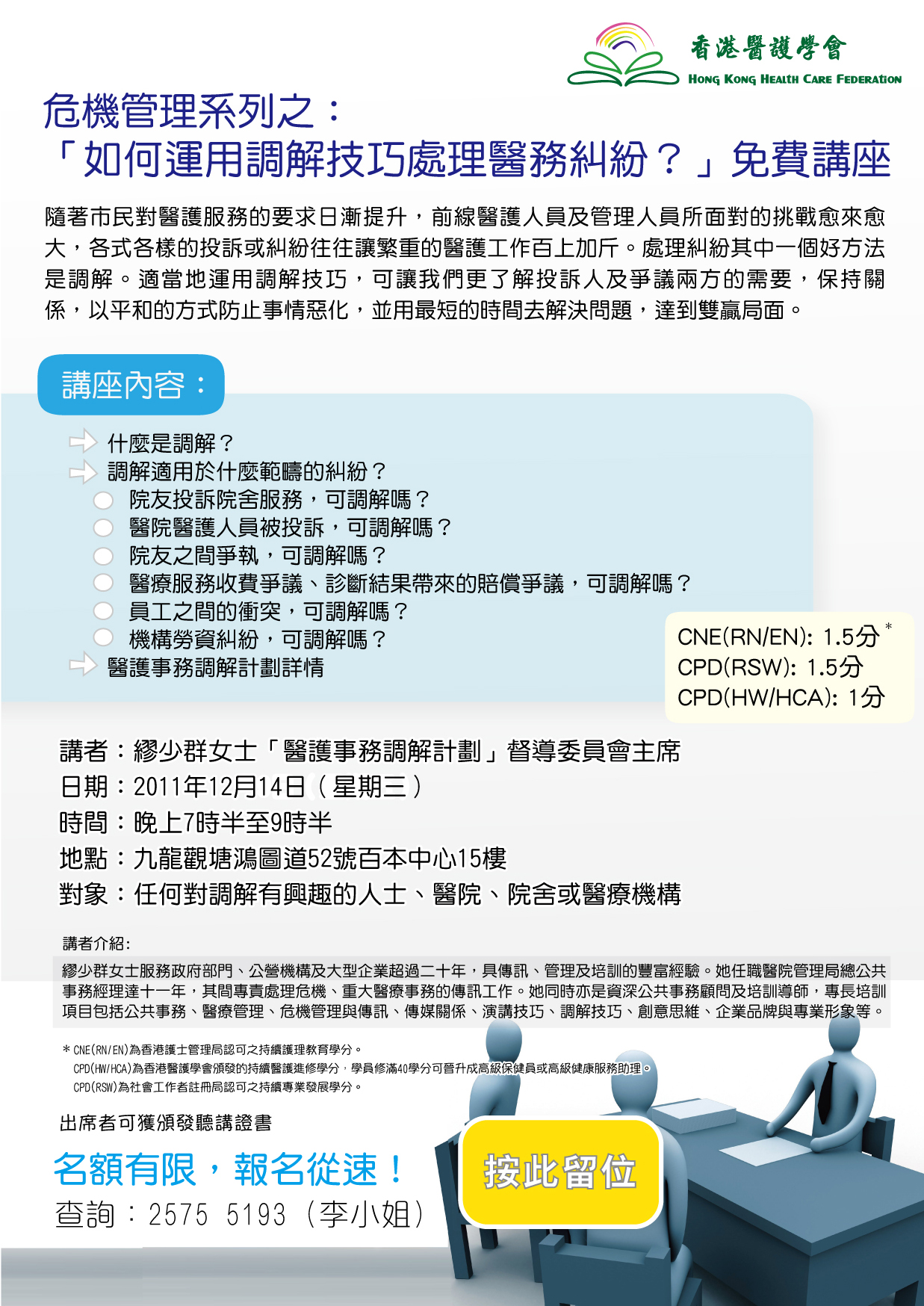 Mediation for Medical Disputes in Hong Kong Co-organized by Department of Justice (DoJ) and HKMA Date: Thursday, 27 March 2014 Time: 1:00 – 4:00 p.m. ... Access Doc